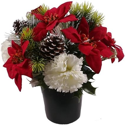 Small Artificial Flower Arrangement Christmas Potted Red Poinsettia Carnation Memorial Grave Cemetery Pot